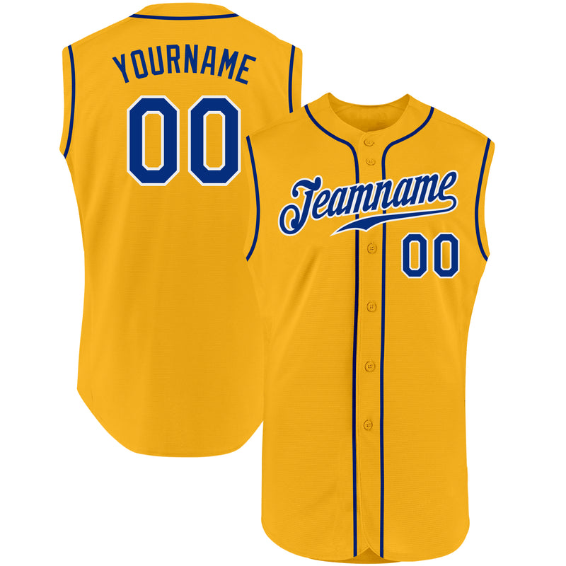 Custom Gold Royal-White Authentic Sleeveless Baseball Jersey