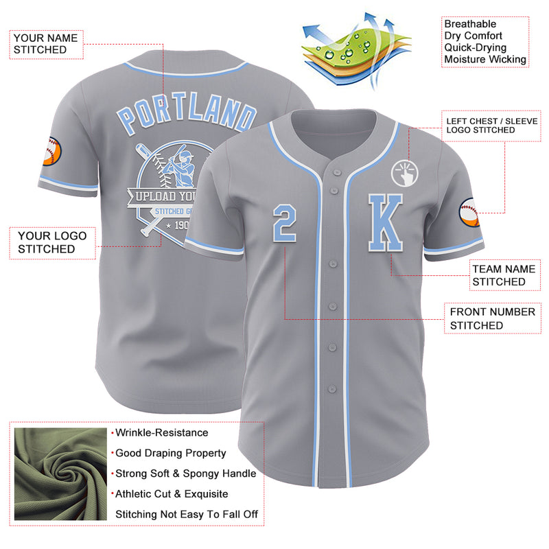 Custom Gray Light Blue-White Authentic Baseball Jersey