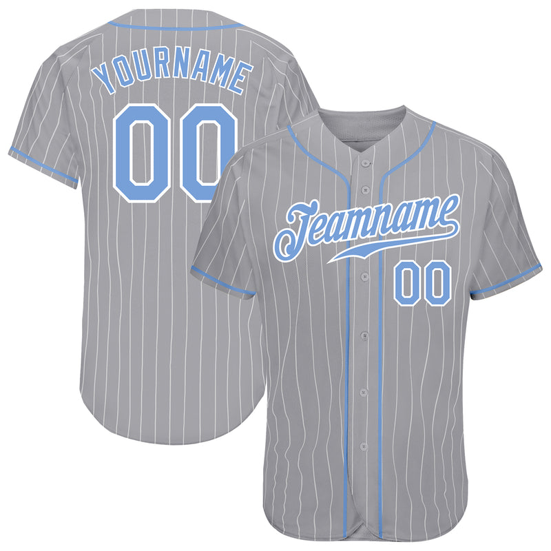 Custom Gray White Pinstripe Light Blue-White Authentic Baseball Jersey