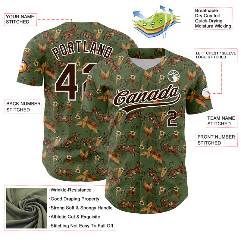 Custom Green Brown-White 3D Pattern Design Animal Leopard And Hawaii Palm Leaves Authentic Baseball Jersey