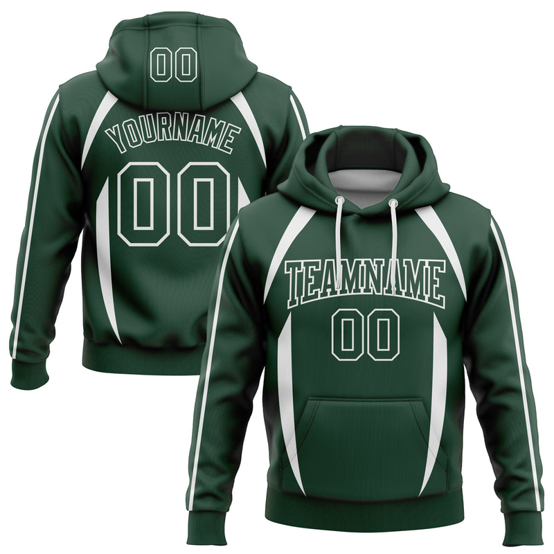 Custom Stitched Green White 3D Pattern Design Contrast Color Stripe Sports Pullover Sweatshirt Hoodie