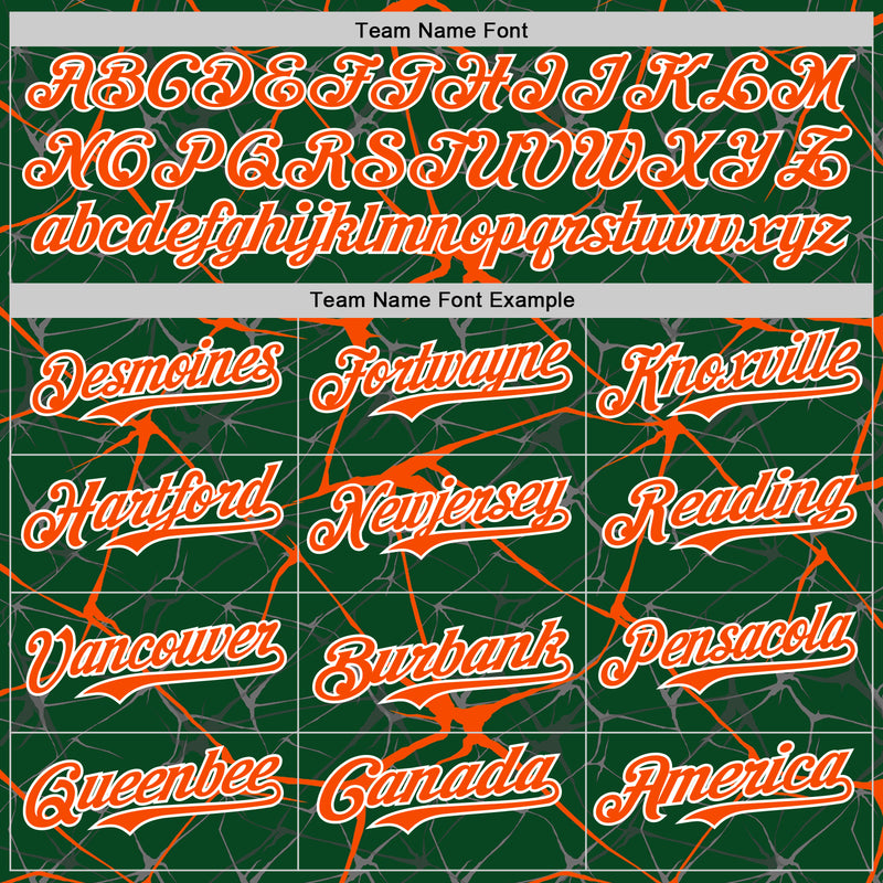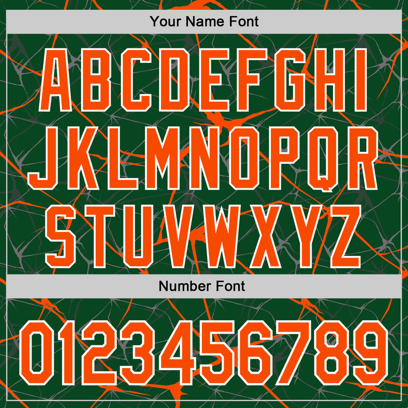 Custom Green Orange-White Abstract Network 3D Pattern Design Bomber Full-Snap Varsity Letterman Hoodie Jacket
