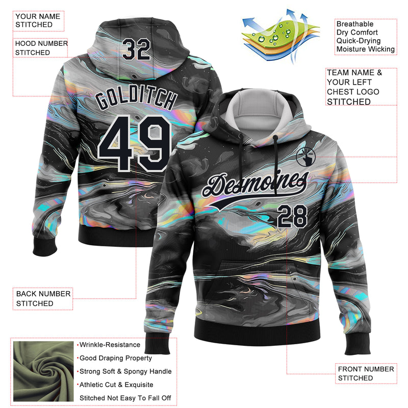 Custom Stitched Black White 3D Pattern Design Abstract Psychedelic Fluid Art Sports Pullover Sweatshirt Hoodie