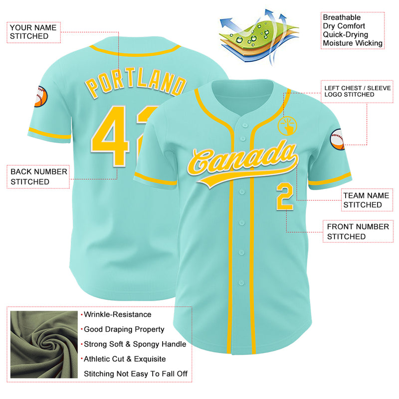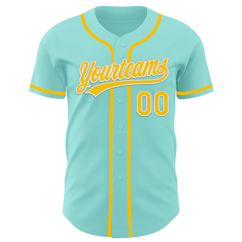 Custom Ice Blue Yellow-White Authentic Baseball Jersey