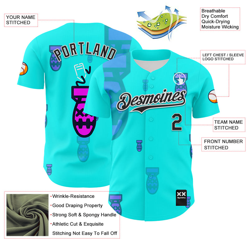 Custom Ice Blue Black-White 3D Revzzz Price Tag Authentic Baseball Jersey