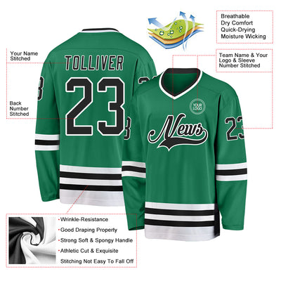 Custom White Kelly Green-White 3D Christmas Hockey Lace Neck Jersey
