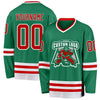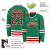 Custom White Kelly Green-White 3D Christmas Hockey Lace Neck Jersey