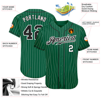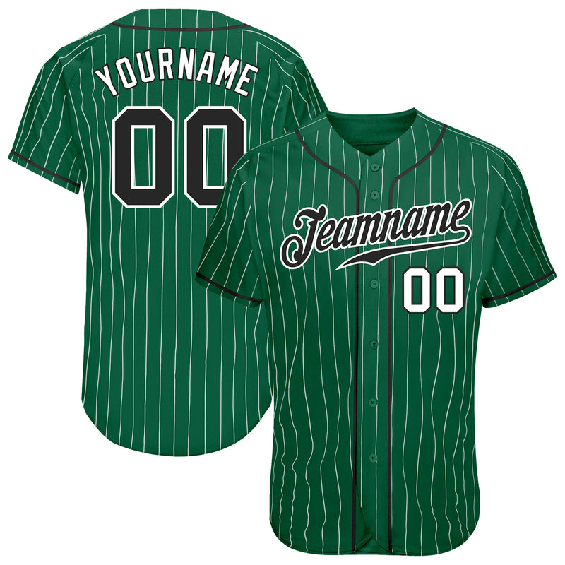 Custom Kelly Green White Pinstripe Black-White Authentic Baseball Jersey