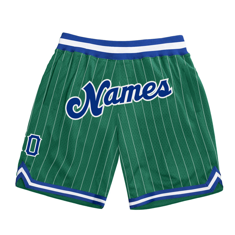 Custom Kelly Green White Pinstripe Royal-White Authentic Basketball Shorts
