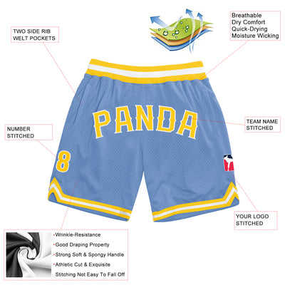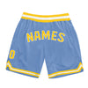 Custom Light Blue Gold-White Authentic Throwback Basketball Shorts