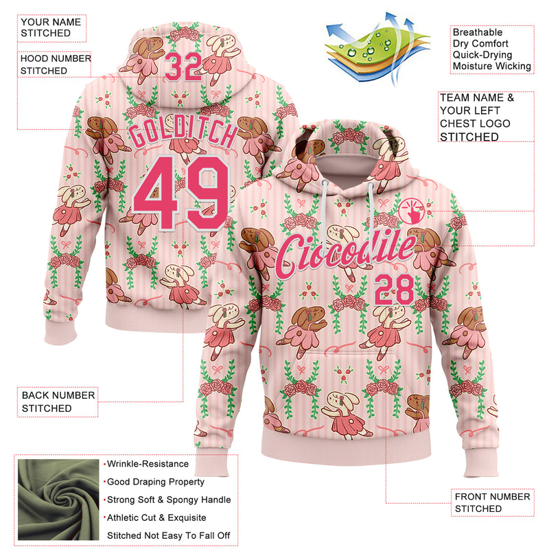 Custom Stitched Light Pink Neon Pink-White 3D Emi Bee Ballet Bunnies Sports Pullover Sweatshirt Hoodie
