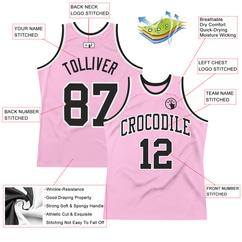Custom Light Pink Black-White Authentic Throwback Basketball Jersey