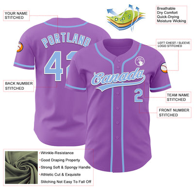 Custom Medium Purple Light Blue-White Authentic Baseball Jersey