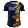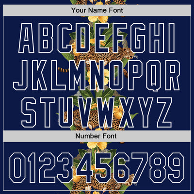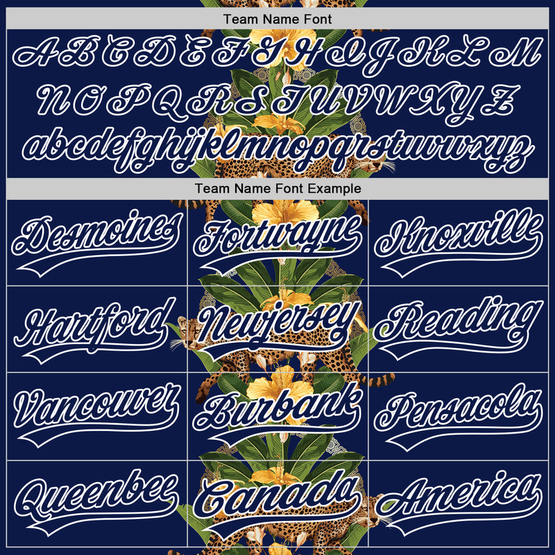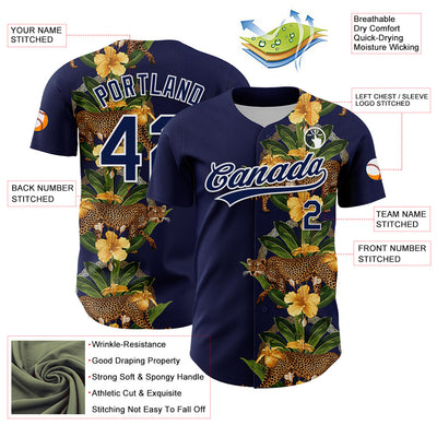 Custom Navy White 3D Tropical Hawaii Jungle Plant And Leopard Authentic Baseball Jersey