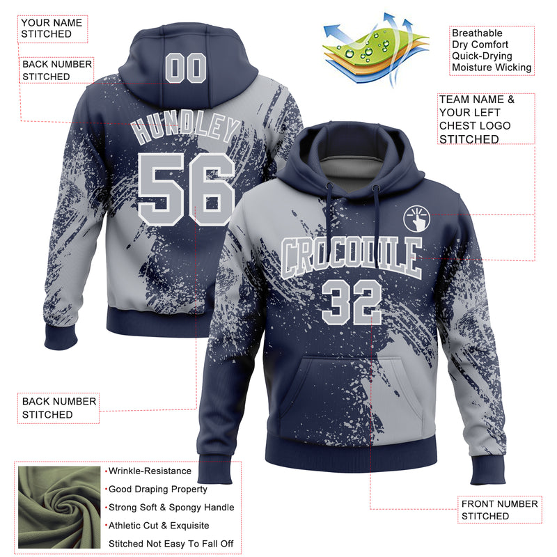 Custom Stitched Navy Gray-White 3D Pattern Design Abstract Brush Stroke Sports Pullover Sweatshirt Hoodie