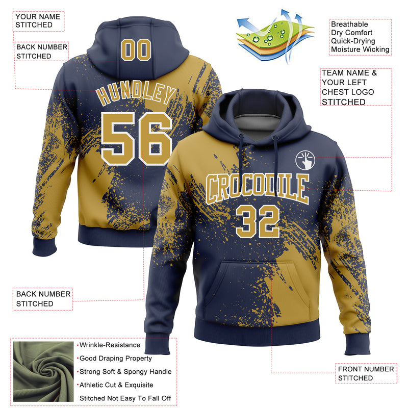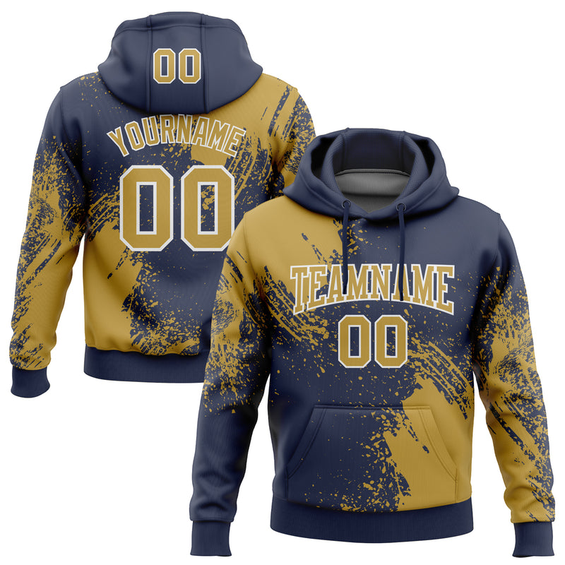 Custom Stitched Navy Old Gold-White 3D Pattern Design Abstract Brush Stroke Sports Pullover Sweatshirt Hoodie