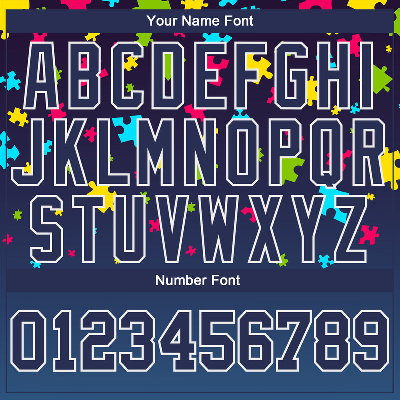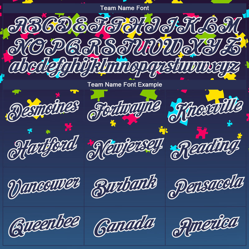 Custom Navy Navy-White Autism Awareness Puzzle Pieces 3D Pattern Long Sleeve Performance T-Shirt