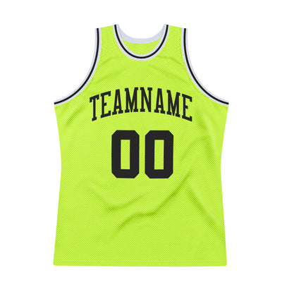 Custom Neon Green Black-White Authentic Throwback Basketball Jersey