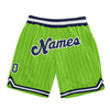 Custom Neon Green White Pinstripe Navy-White Authentic Basketball Shorts
