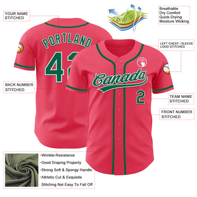 Custom Neon Pink Kelly Green-White Authentic Baseball Jersey