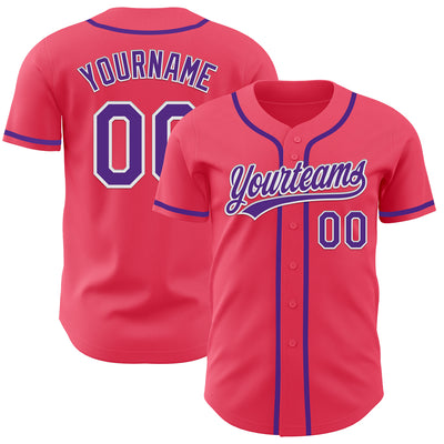 Custom Neon Pink Purple-White Authentic Baseball Jersey
