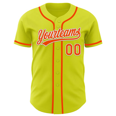 Custom Neon Yellow Orange-White Authentic Baseball Jersey