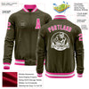 Custom Olive Pink-White Bomber Varsity Letterman Salute To Service Zipper Jacket