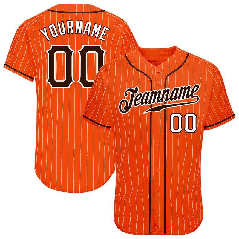 Custom Orange White Pinstripe Brown-White Authentic Baseball Jersey