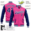 Custom Pink Royal-White Bomber Full-Snap Varsity Letterman Two Tone Jacket