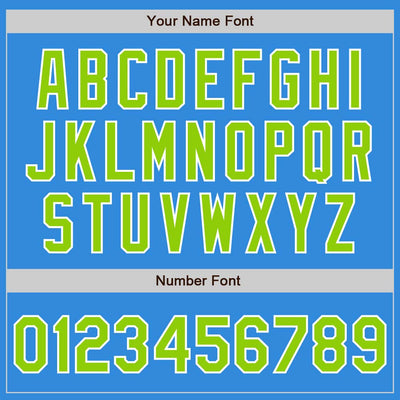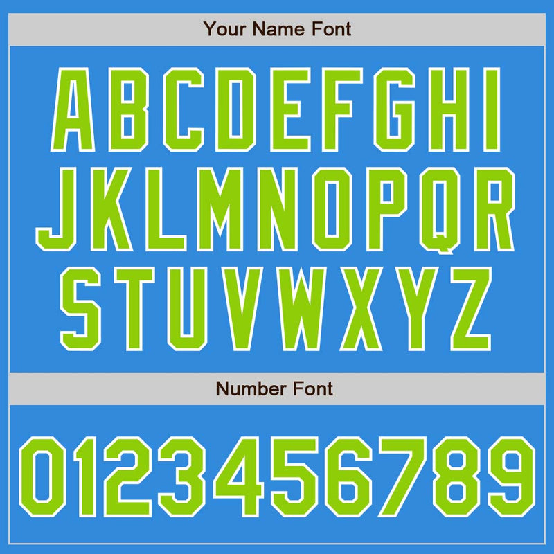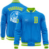 Custom Powder Blue Neon Green-White Bomber Varsity Letterman Zipper Jacket