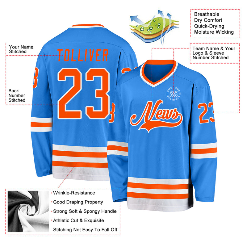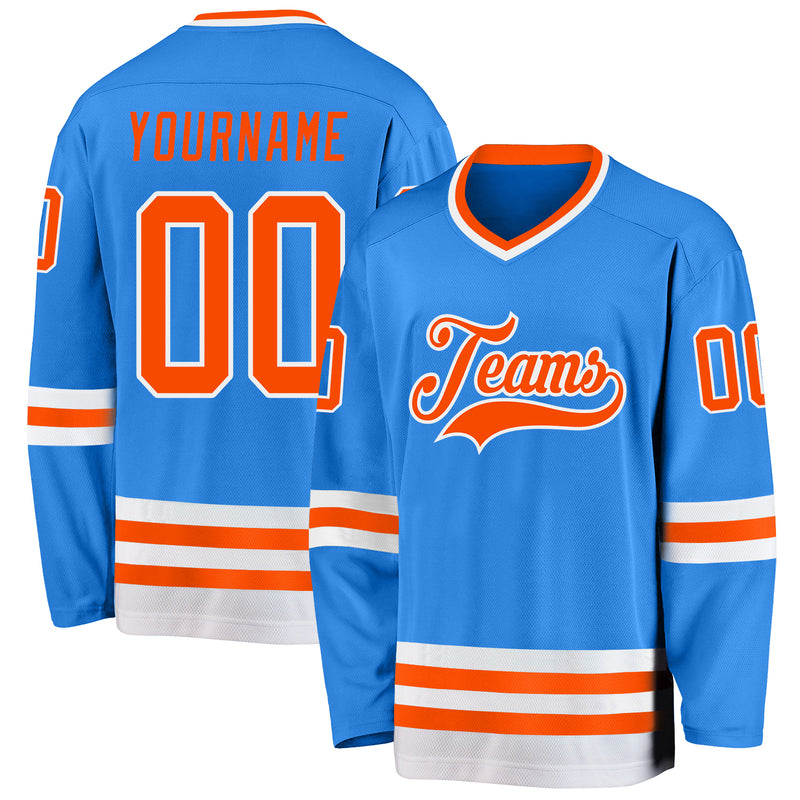 Custom Powder Blue Orange-White Hockey Jersey