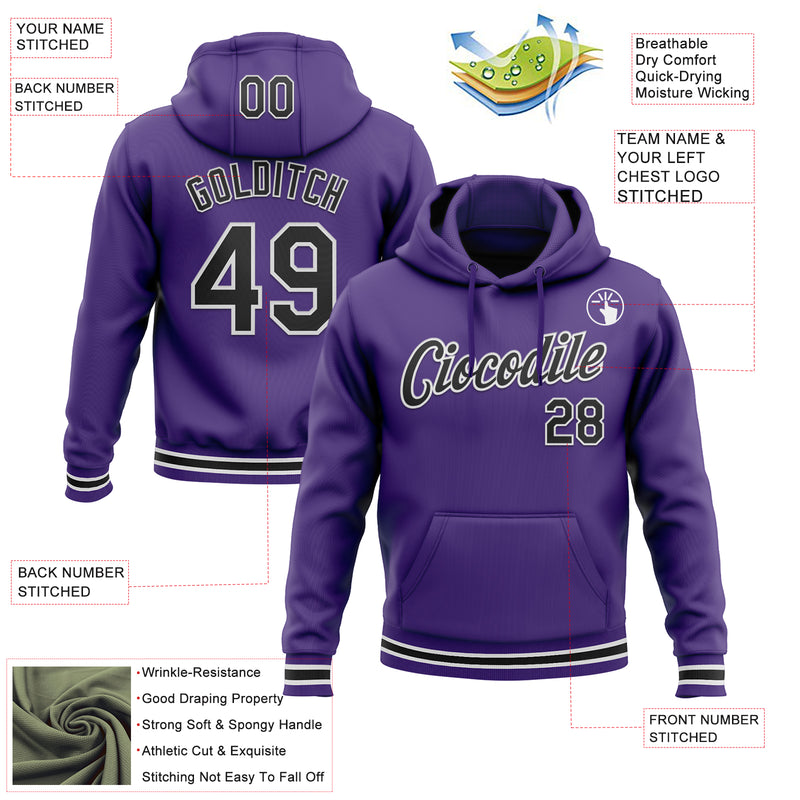 Custom Stitched Purple Black-White Sports Pullover Sweatshirt Hoodie