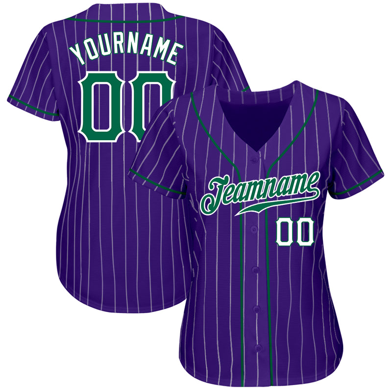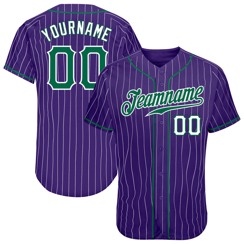 Custom Purple White Pinstripe Kelly Green-White Authentic Baseball Jersey