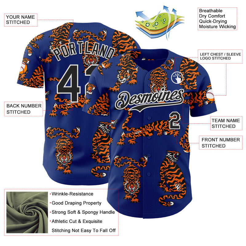 Custom Royal Black-White 3D Alexandra Ramirez Tigers Street Art Authentic Baseball Jersey