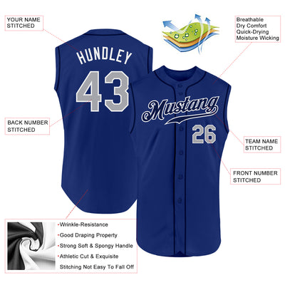 Custom Royal Gray-White Authentic Sleeveless Baseball Jersey