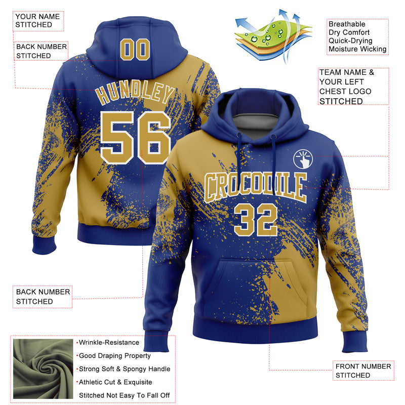 Custom Stitched Royal Old Gold-White 3D Pattern Design Abstract Brush Stroke Sports Pullover Sweatshirt Hoodie