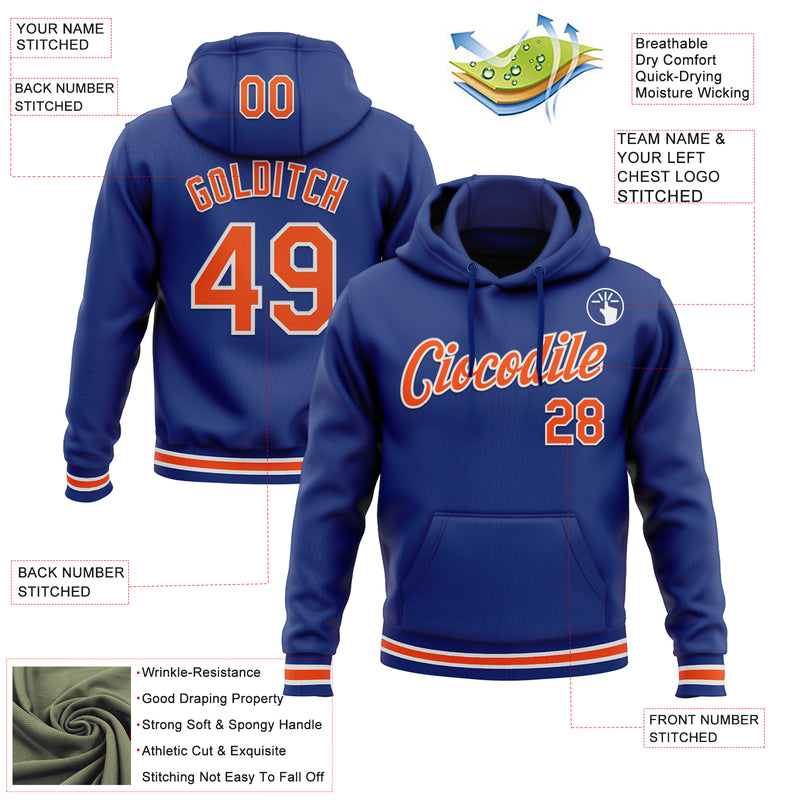 Custom Stitched Royal Orange-White Sports Pullover Sweatshirt Hoodie