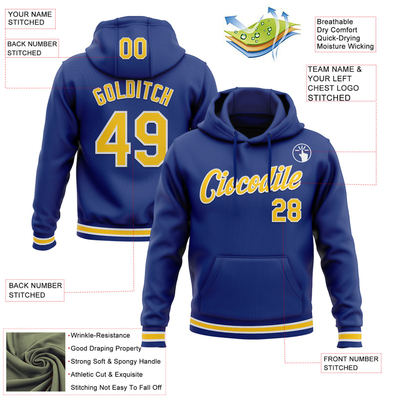 Custom Stitched Royal Yellow-White Sports Pullover Sweatshirt Hoodie