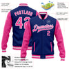 Custom Royal Pink-White Bomber Full-Snap Varsity Letterman Two Tone Jacket