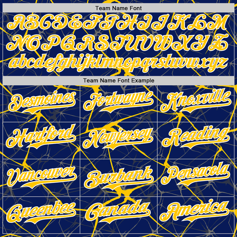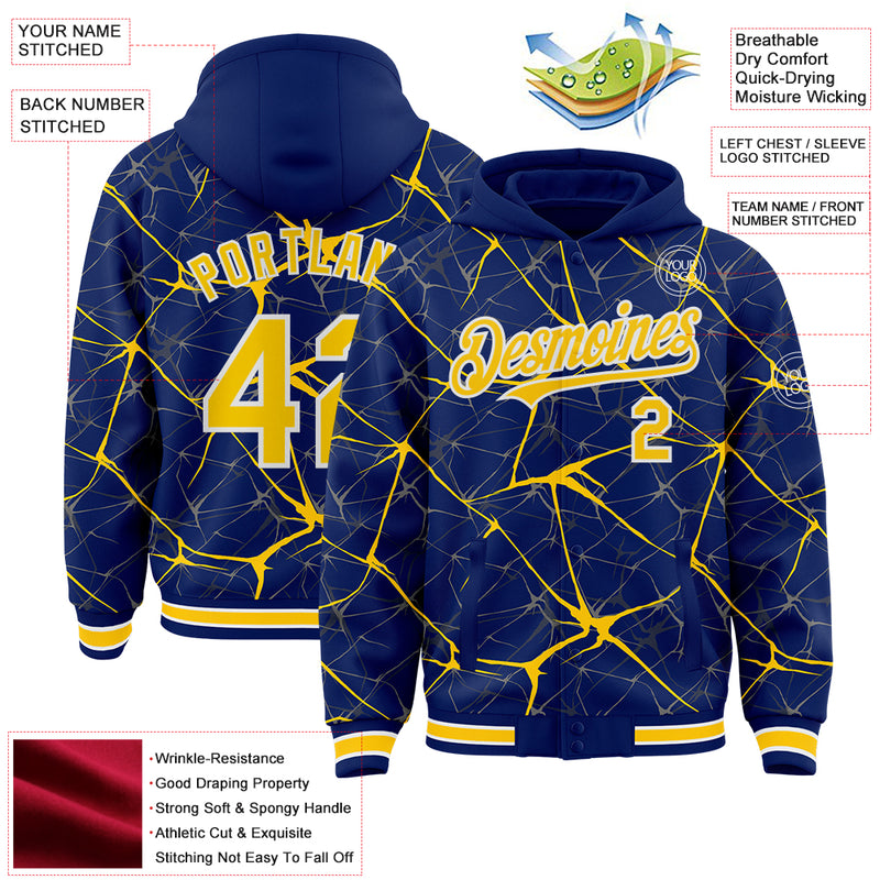 Custom Royal Yellow-White Abstract Network 3D Pattern Design Bomber Full-Snap Varsity Letterman Hoodie Jacket