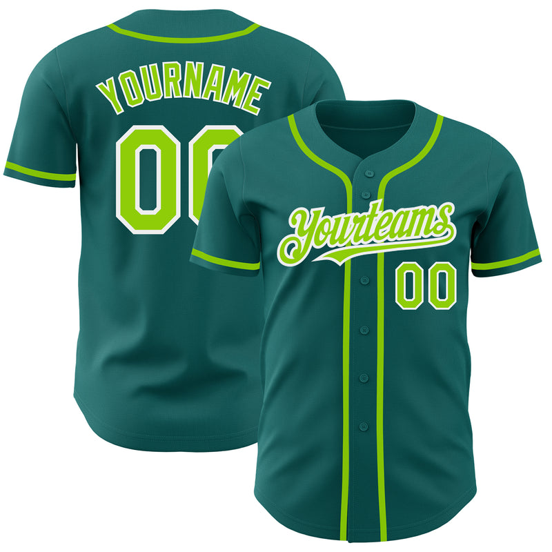 Custom Teal Neon Green-White Authentic Baseball Jersey