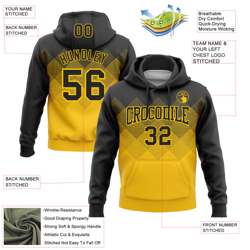 Custom Stitched Black Yellow 3D Pattern Design Gradient Square Shape Sports Pullover Sweatshirt Hoodie