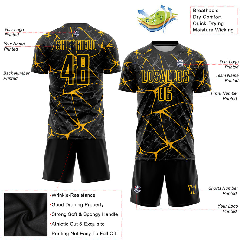 Custom Black Yellow Sublimation Soccer Uniform Jersey