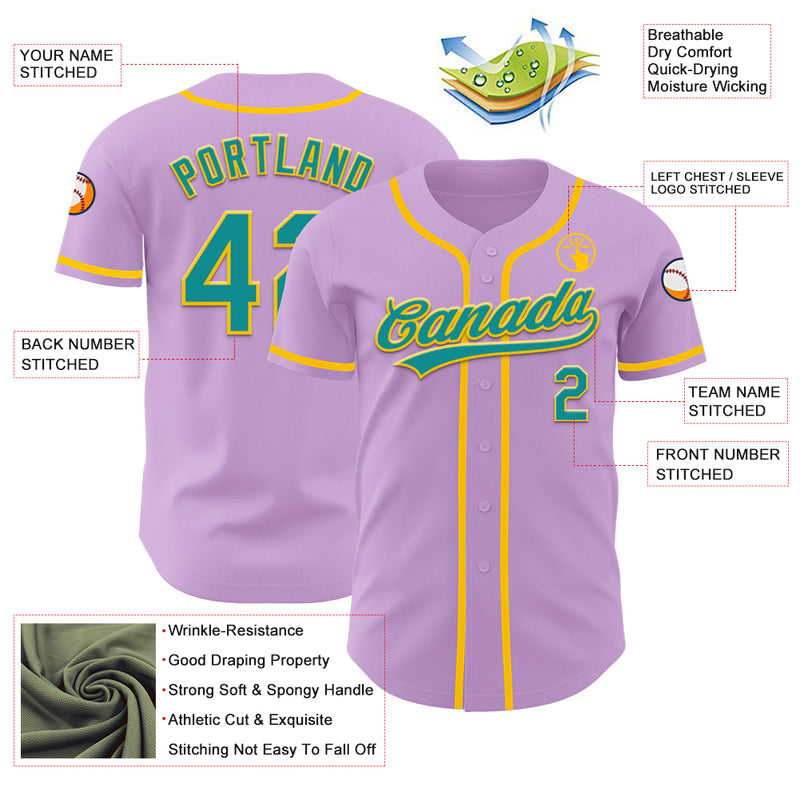 Custom Light Purple Teal-Yellow Authentic Baseball Jersey