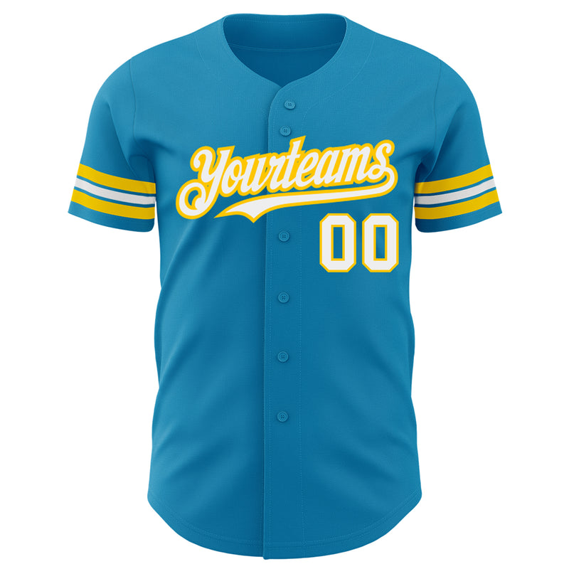 Custom Panther Blue White-Yellow Authentic Baseball Jersey