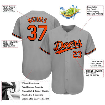 Custom Gray Orange-Black Authentic Baseball Jersey