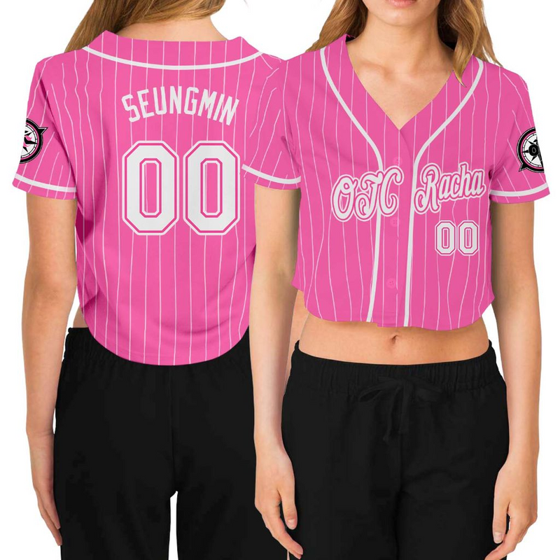 Custom Women's Pink White V-Neck Cropped Baseball Jersey